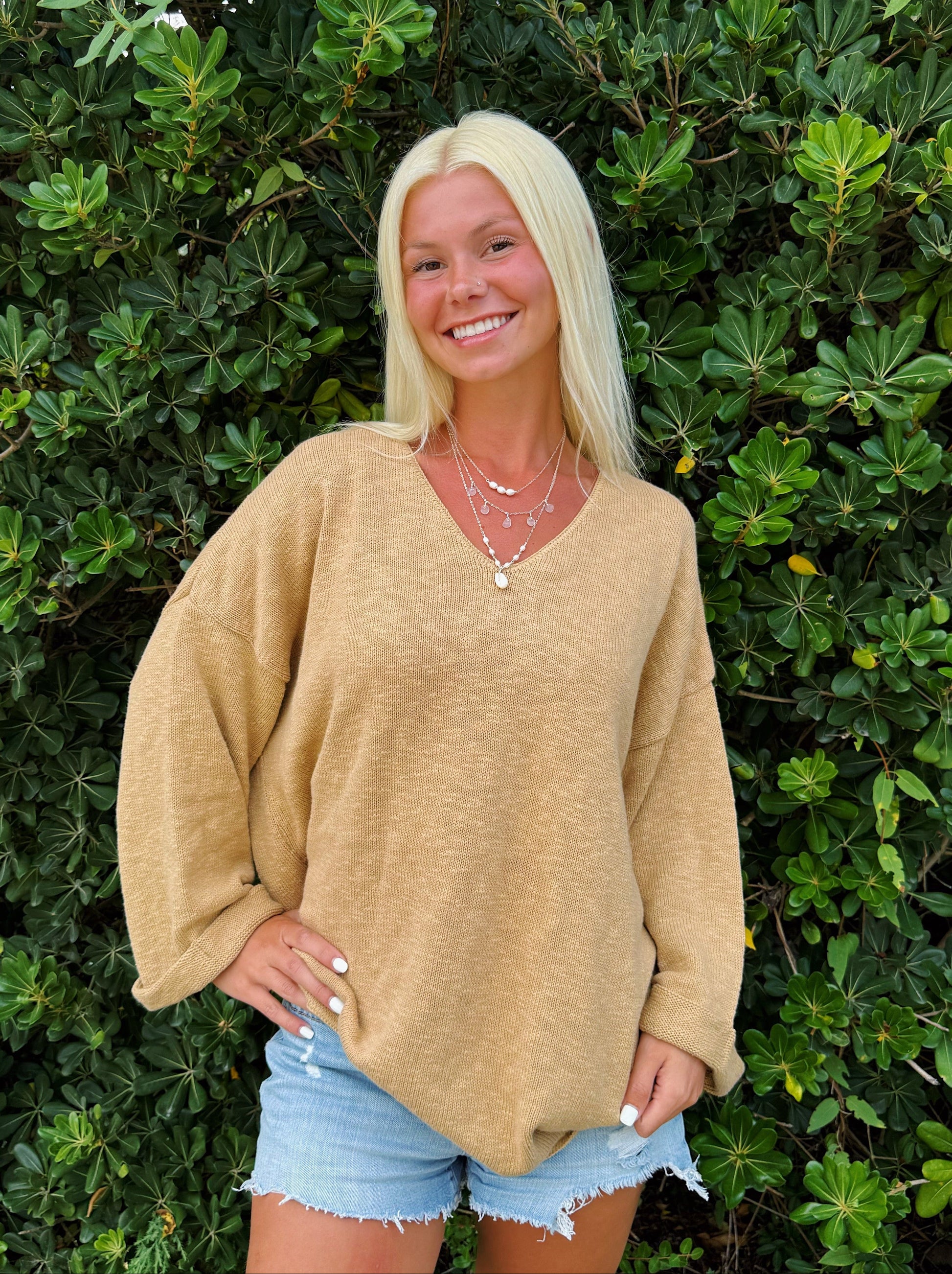 Oversized v neck sweater with drop shoulder sleeves & wide folded cuffs