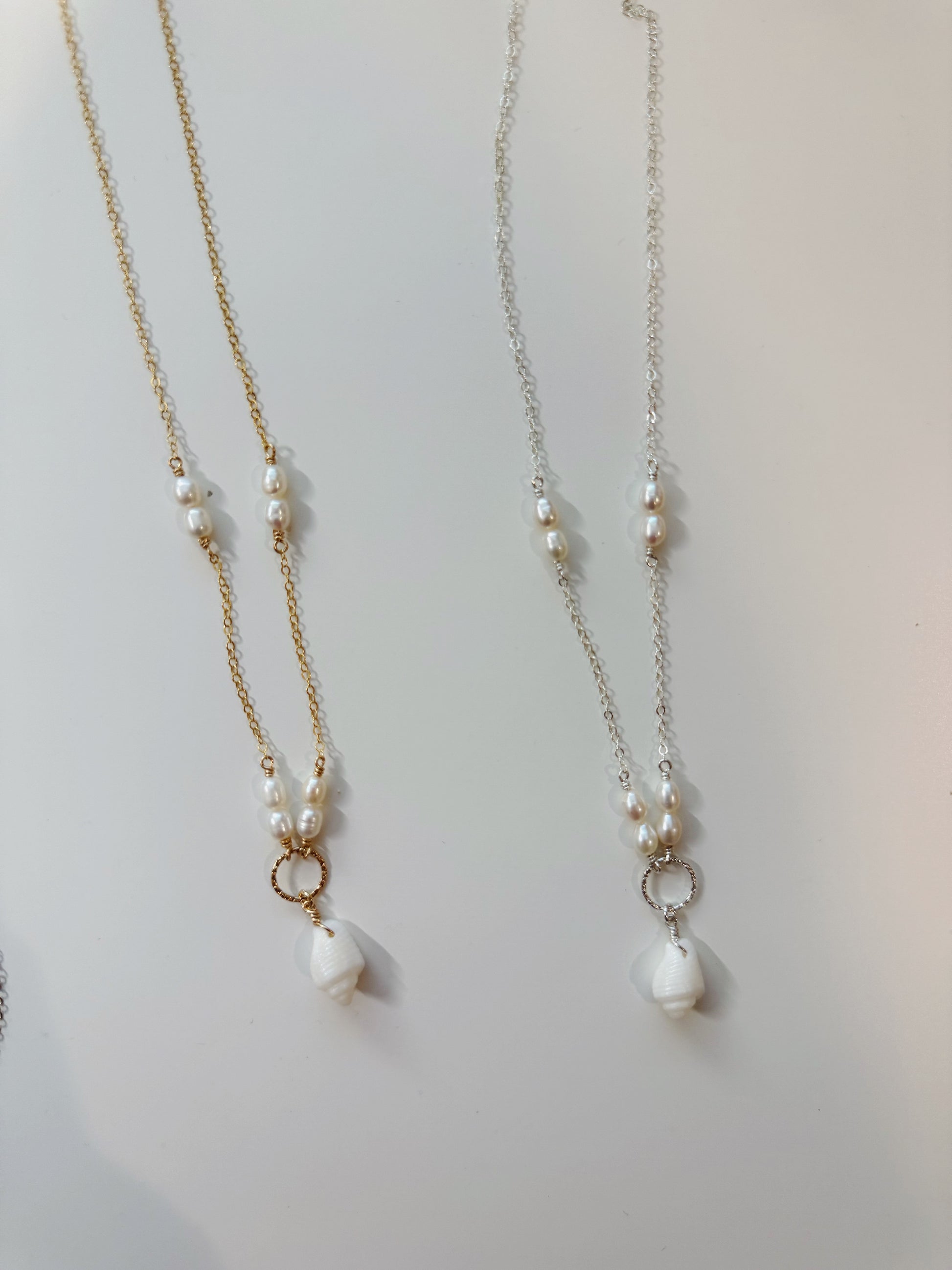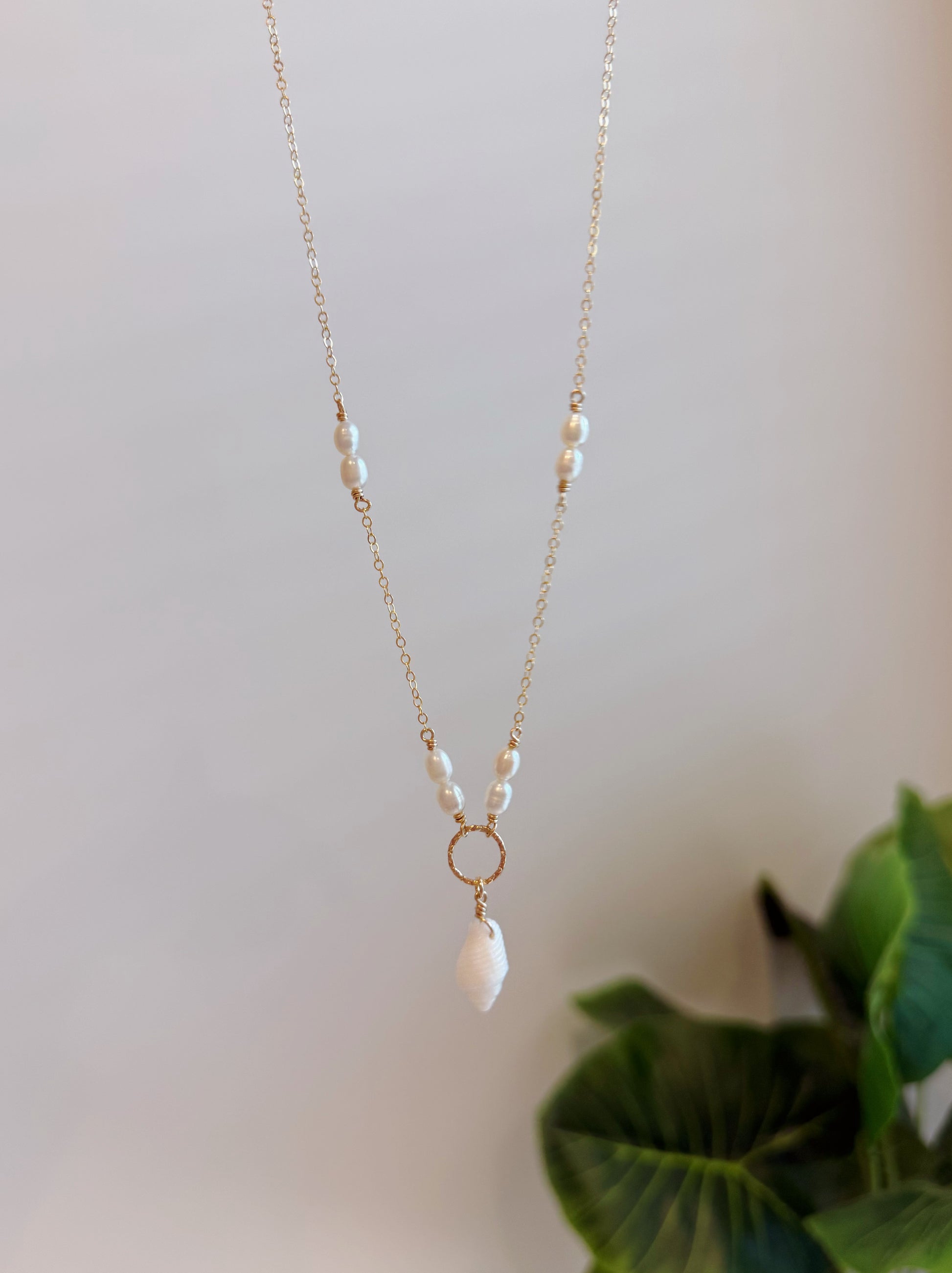 Gold Filled Baroque Pearl White Spiral Seashell Necklace