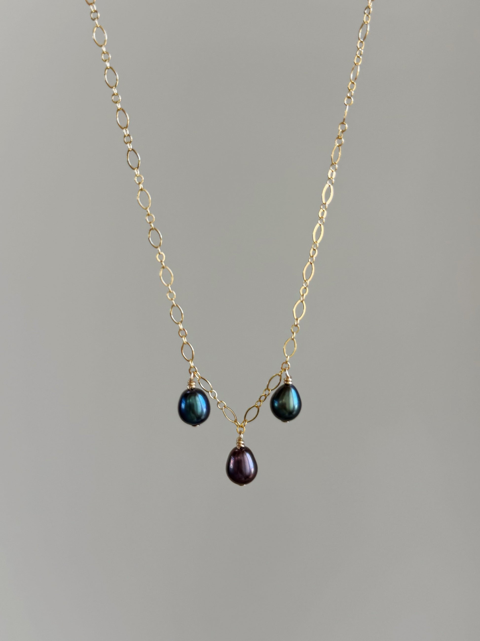 Gold Filled Fancy Chain Tahitian Peacock Pearl Necklace