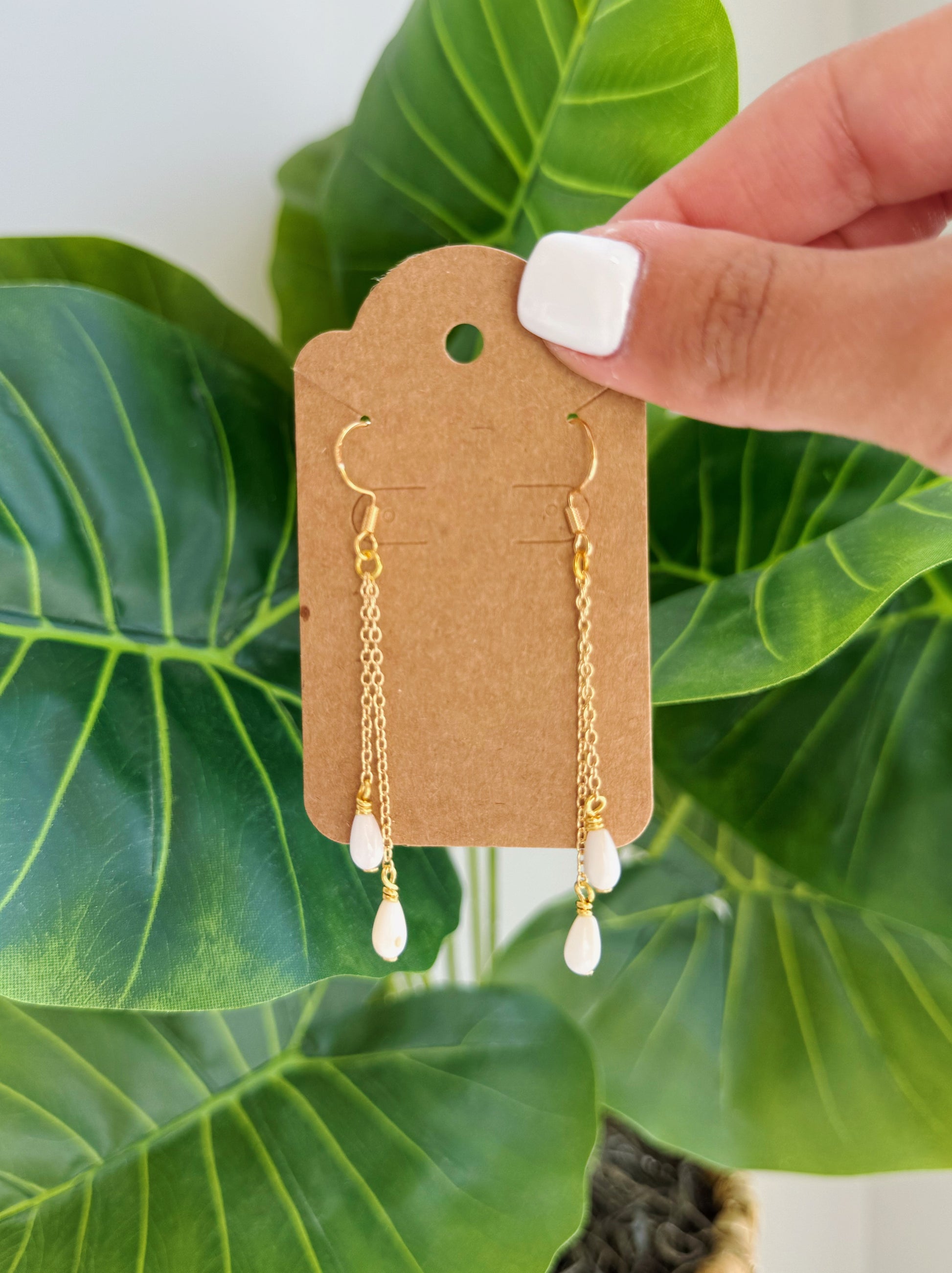 Gold Mother of Pearl Teardrop Double Drop Earrings