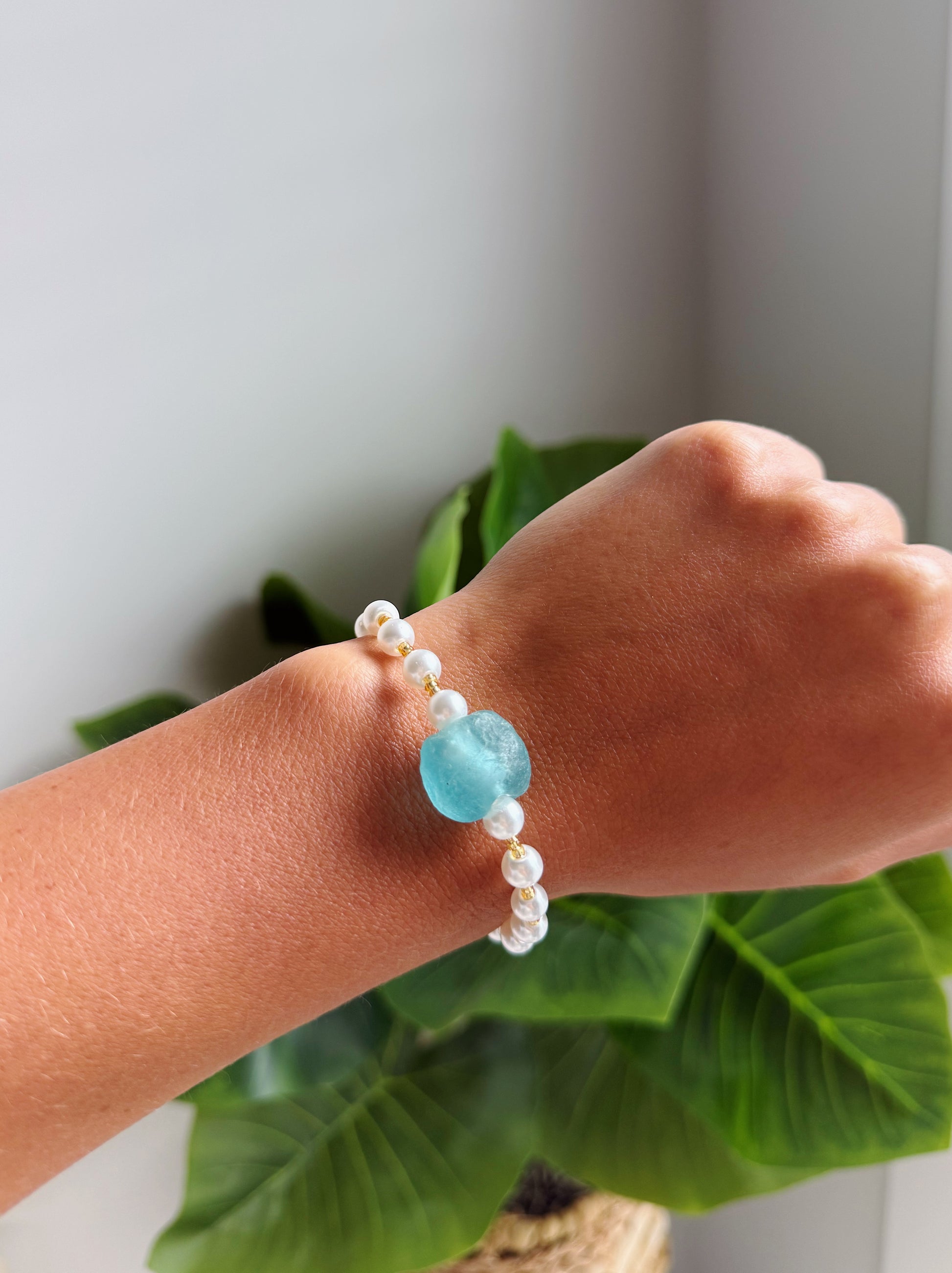 - Turquoise blue sea glass beads ( NOT found in Cayman )