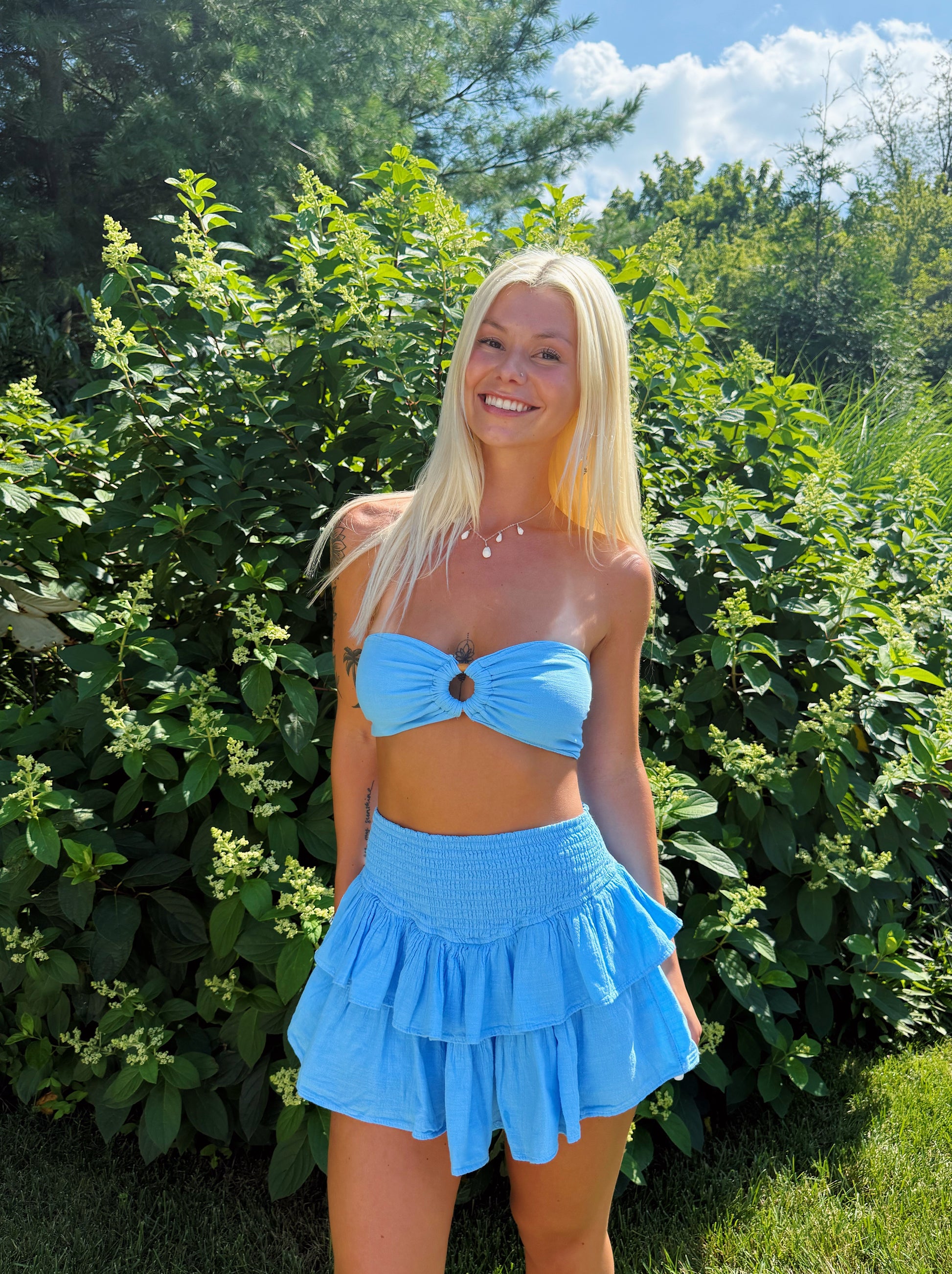 Ocean Blue Bandeau & Ruffle Skirt Set