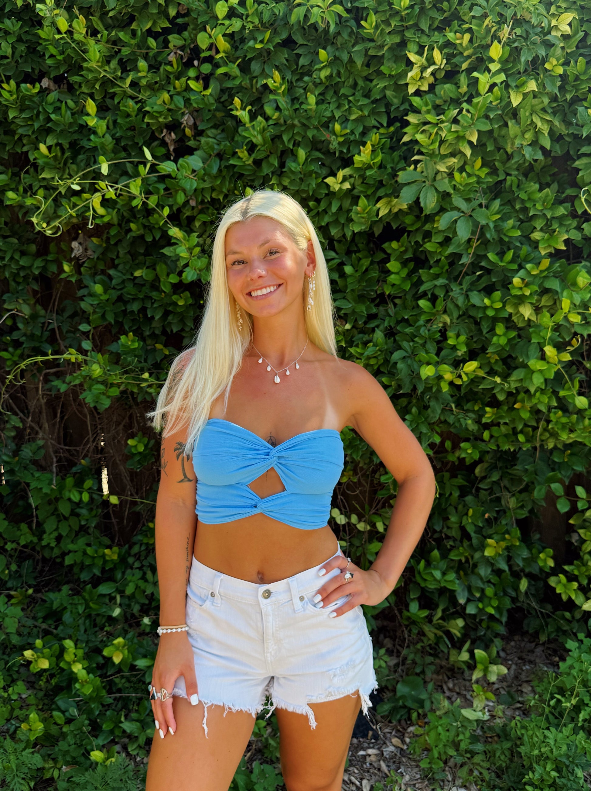 Ocean Blue Double Twist Tube Top