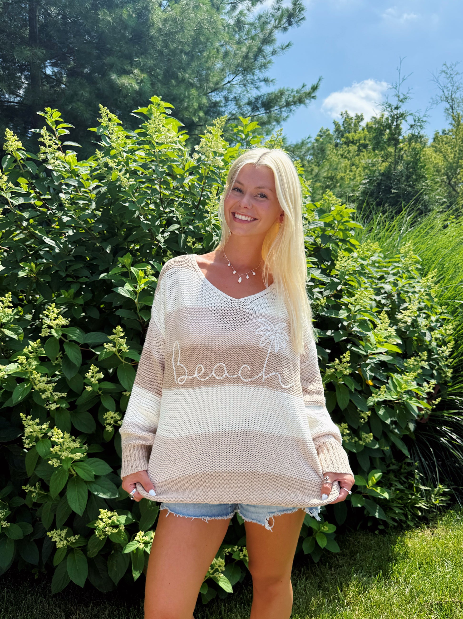 Sand Stripe Beach & Palm V Neck Knit Sweater