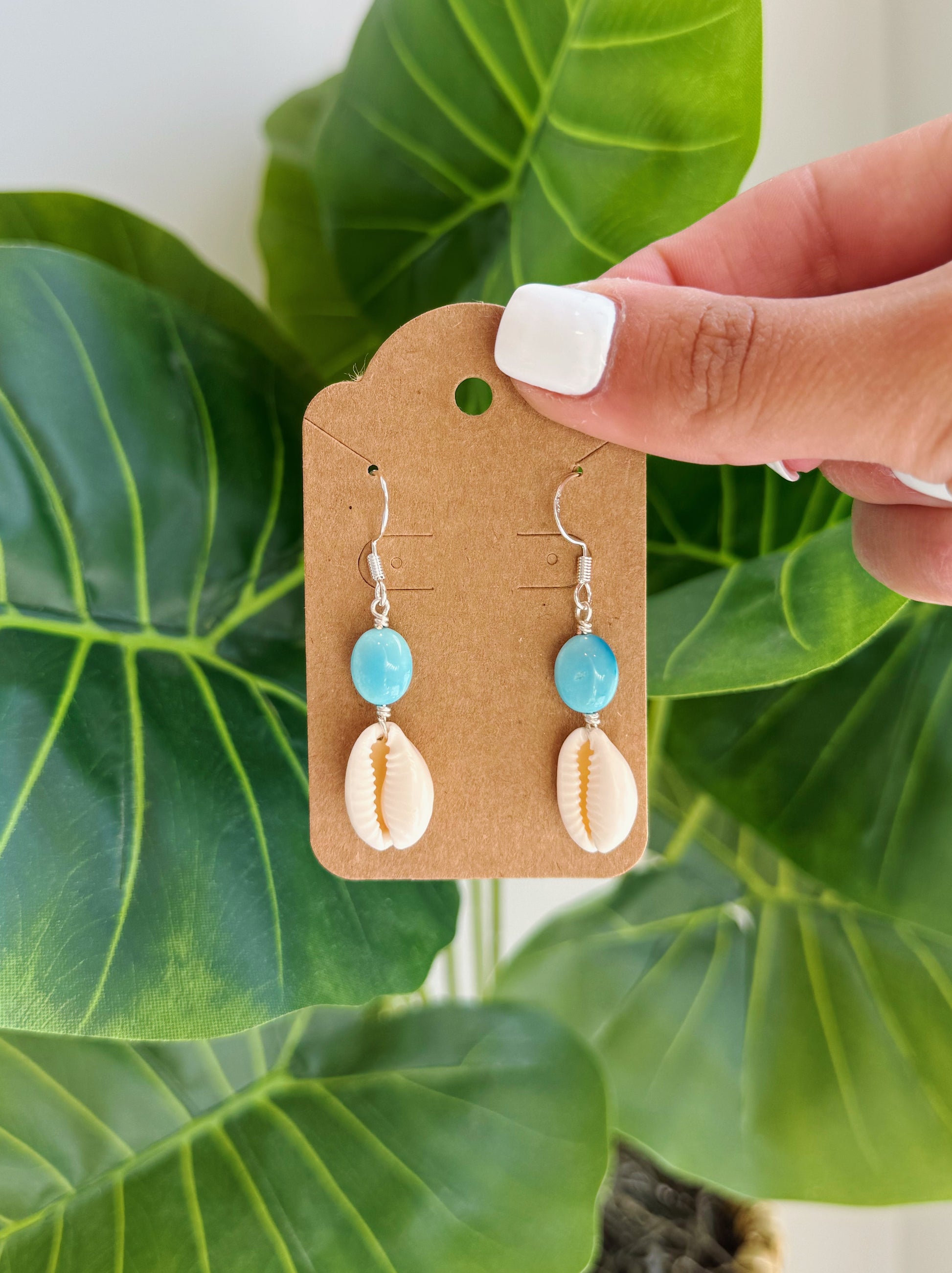 Silver Cowrie Shell & Turquoise Gemstone Earrings