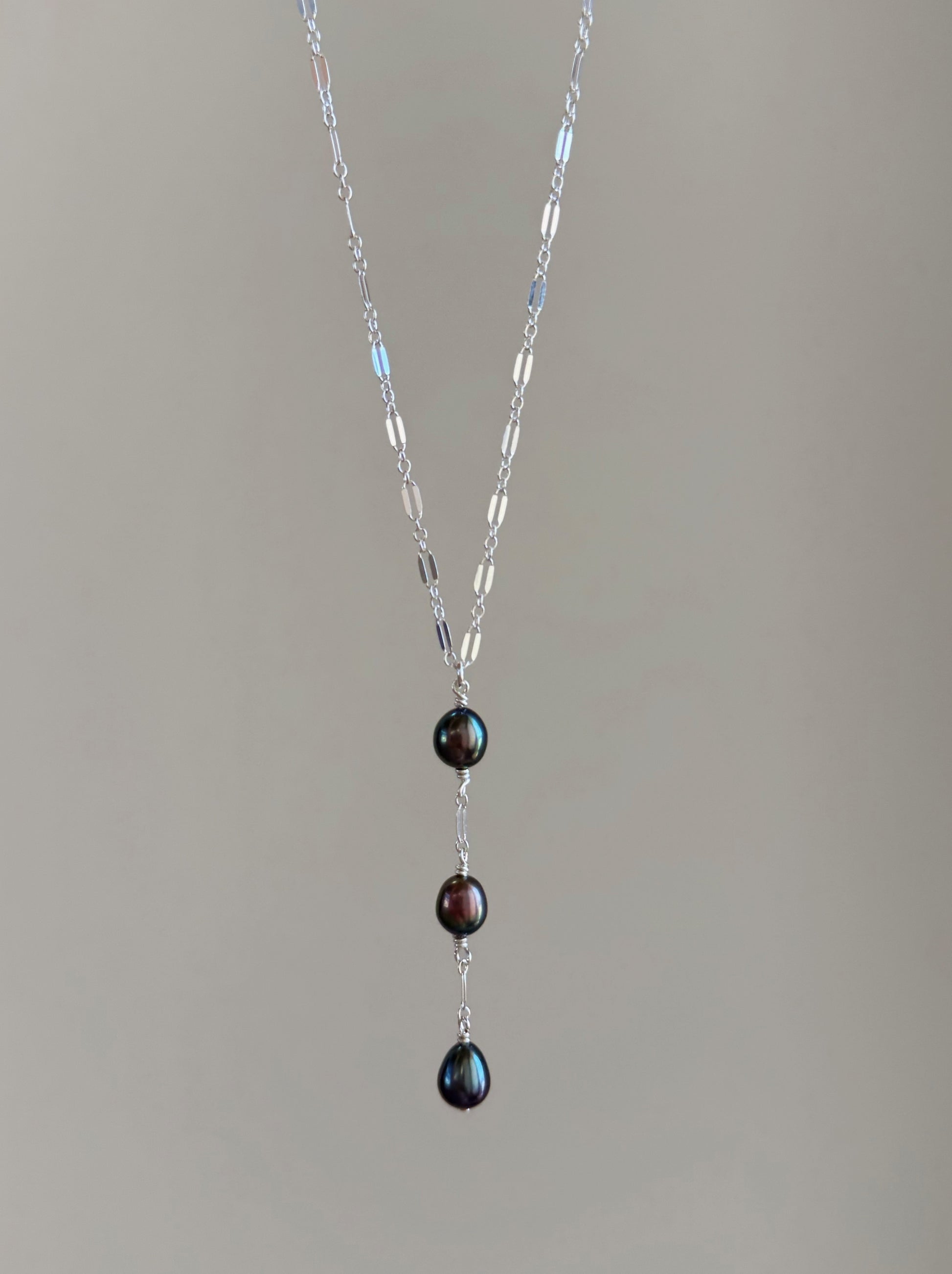 Sterling Silver Sparkle Chain Tahitian Peacock Pearl Triple Drop Necklace