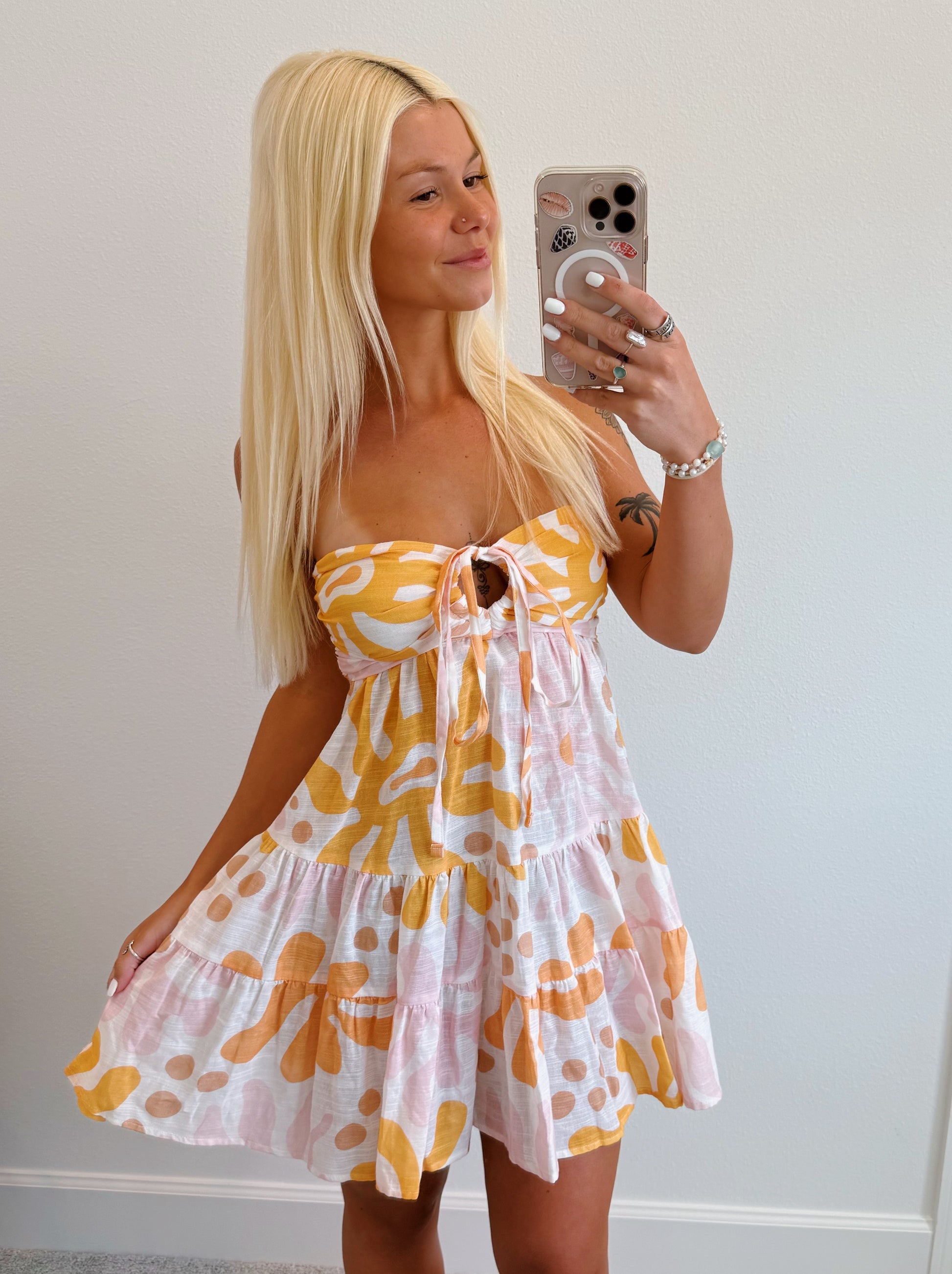 Blue Tropical & Summer Sorbet Tie Back Flowy Dress
