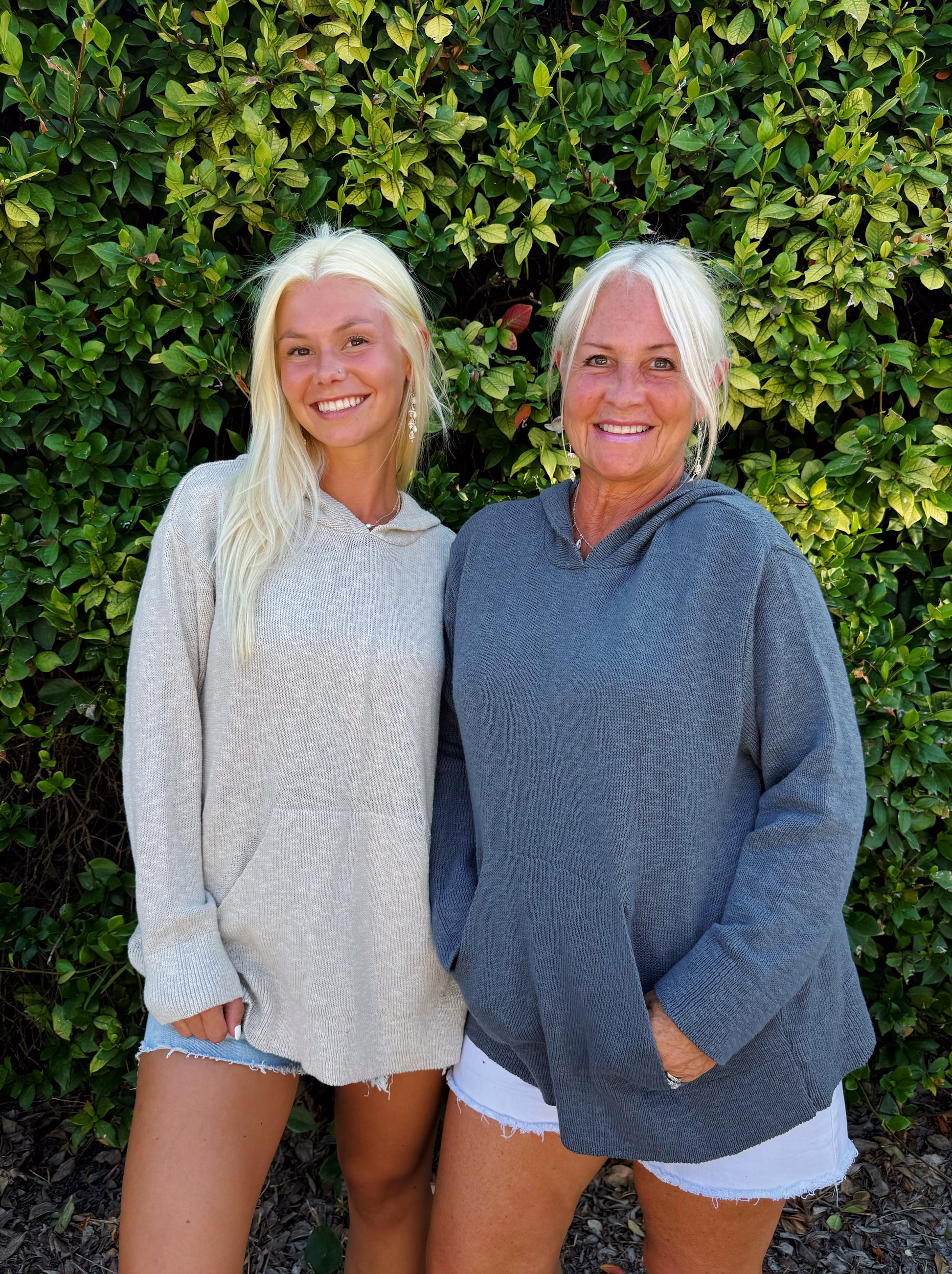 Long sleeve knit hoodie - kangaroo pockets, hood, relaxed fit, stretchy!
