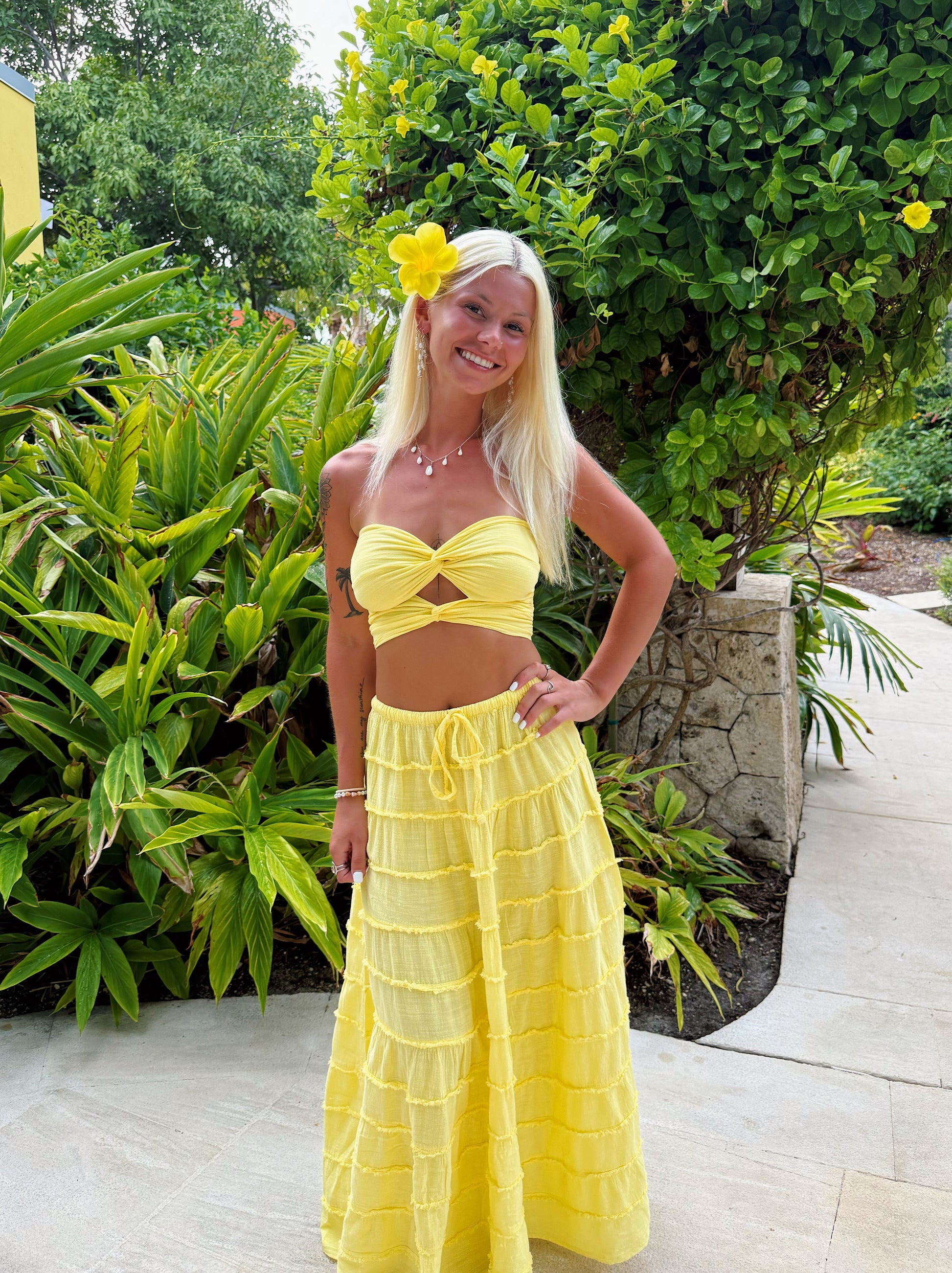 Sunshine Yellow Double Twist Tube Top & Matching Flowy Skirt